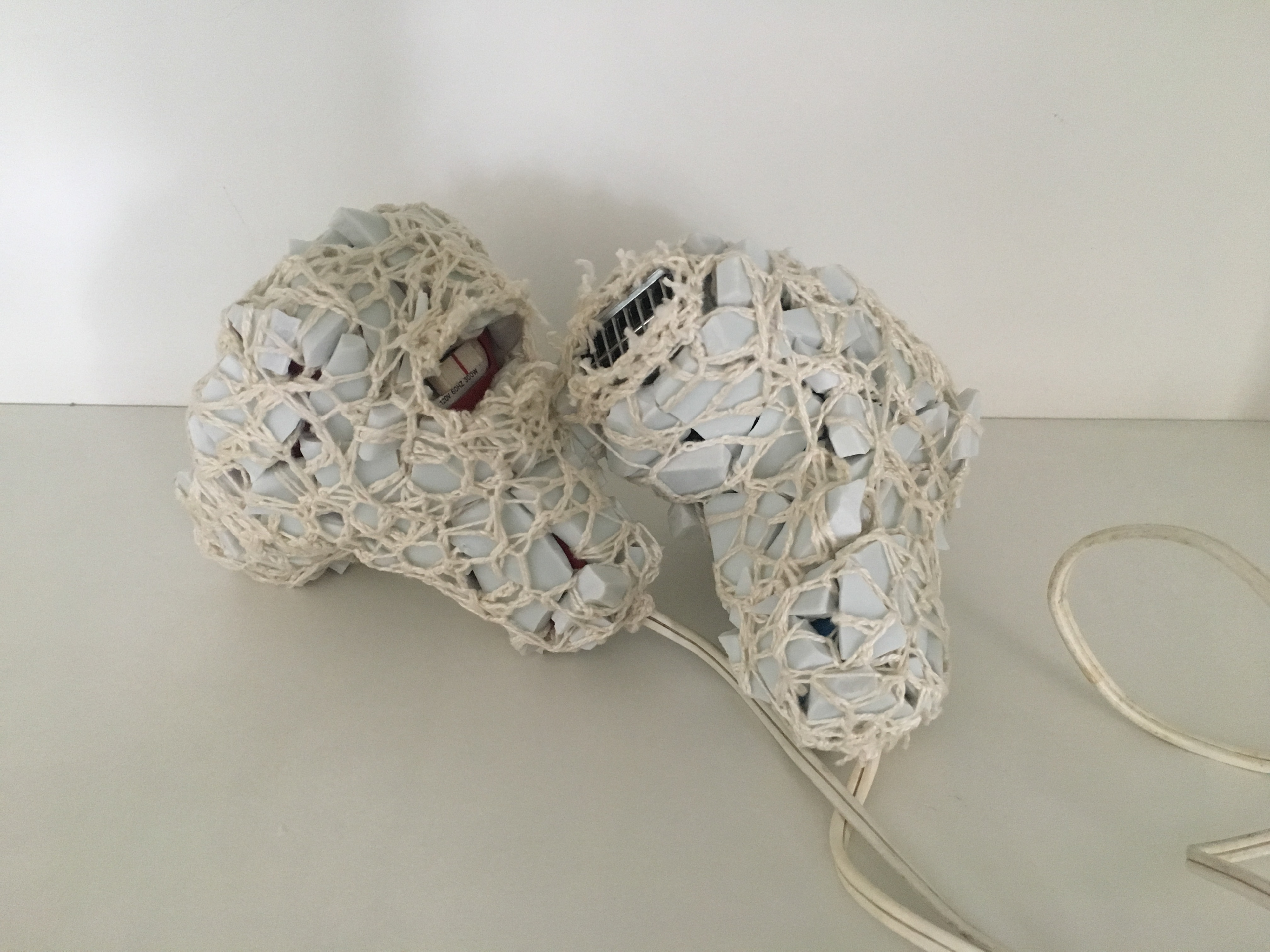 máquina de costura, ferro de passar, secadores de cabelo, mixer, cacos de porcelana e linha de algodão